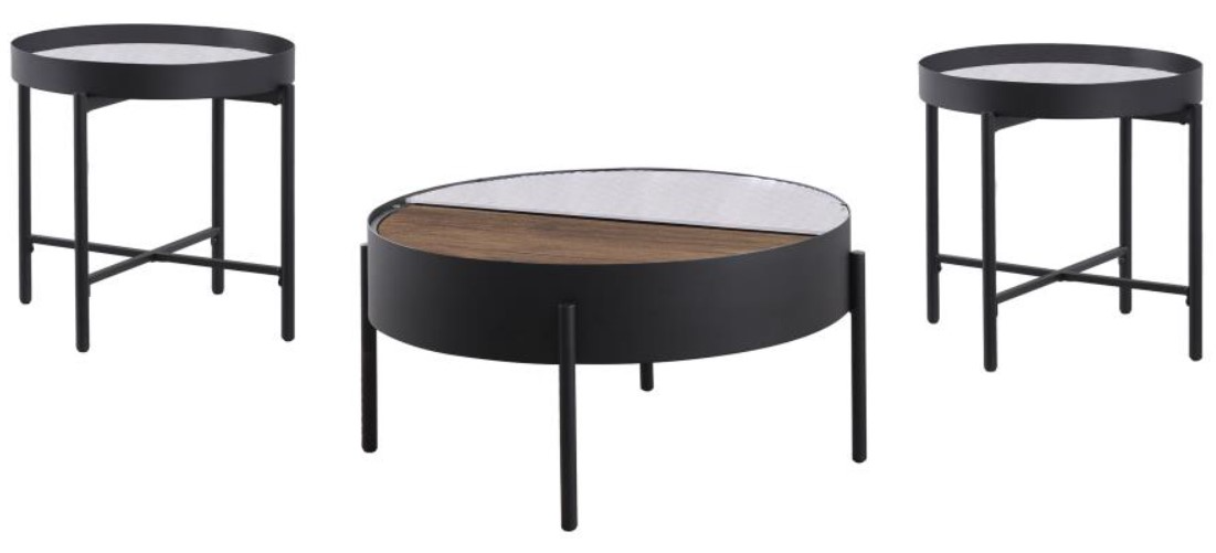 The Coaster® Ozella 3-Piece Sandy Black Occasional Table Set includes a coffee table and an end table, both finished in a sleek sandy black. These tables offer a modern, practical design with durable construction, providing the perfect blend of style and functionality for any living space.Read More
