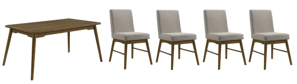 The Malibu in Walnut Dining Room is a sophisticated and timeless addition to any dining space. With its rich walnut finish, this dining set exudes elegance and warmth. The warm grey upholstery adds a touch of luxury and comfort, while the tapered table legs provide stability and mid-century style.Read More