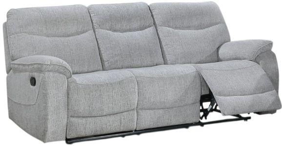 Wrapped in soft, easy-care 100% polyester mist gray fabric, it delivers a luxuriously cozy seating experience with a modern, sophisticated touch. The thoughtfully designed seating blends resilient springs and plush foam cushions, ensuring lasting support and shape retention for consistent comfort over the years. Generously cushioned recliners invite you to sink in and unwind, offering ultimate relaxation at the touch of a button. For added convenience, built-in usb type-a and type-c charging ports keep your devices powered and within easy reach. The Chablis reclining sofa is the perfect centerpiece for a stylish and comfortable living space.