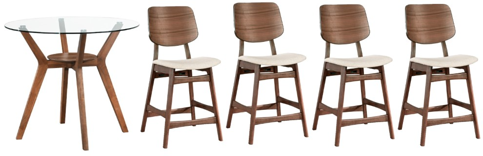 This dining set merges the sturdy resilience of solid Rubberwood, the precision of engineered woods, and the timeless appeal of authentic Walnut veneers. Built to endure, it brings both strength and lasting beauty to your home.