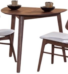 A combination of solid Rubberwood and Walnut Veneers create a curable, long lasting dining set. Dining chairs have reinforcing base stretchers for added stability.